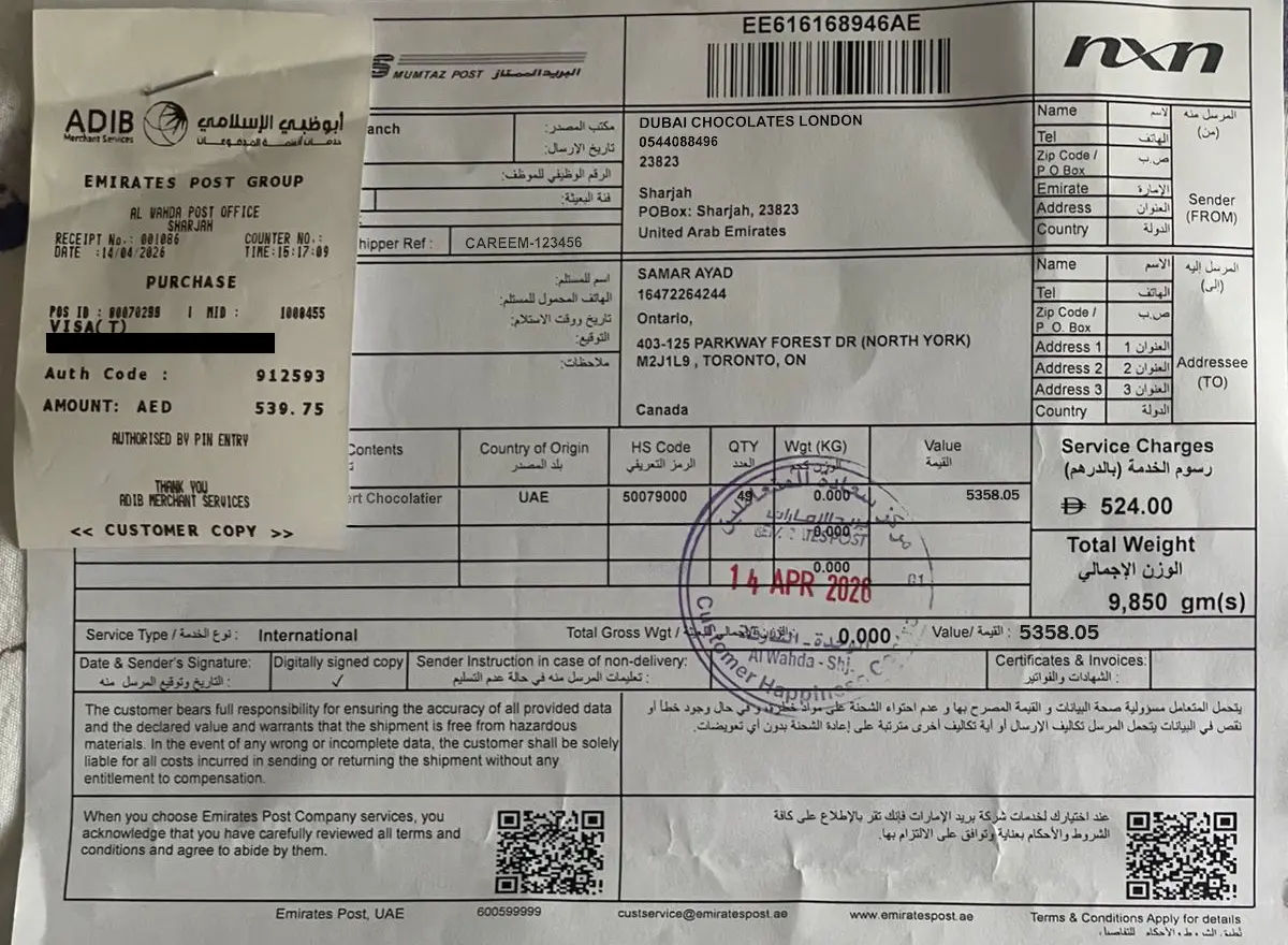 Tracked Delivery: Dubai (UAE) to Toronto (Canada)
